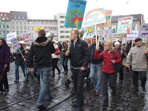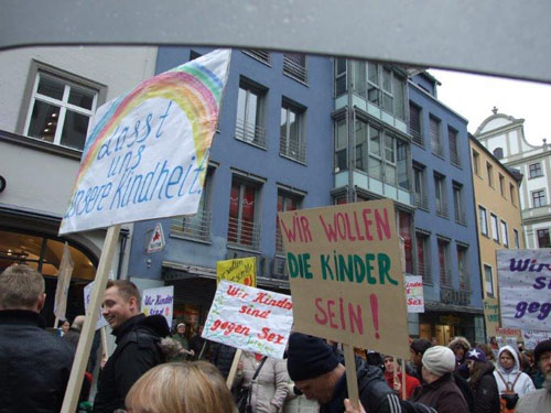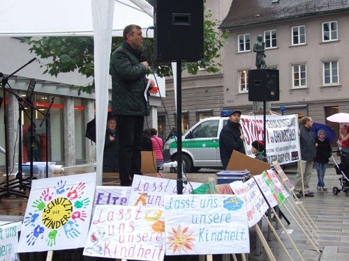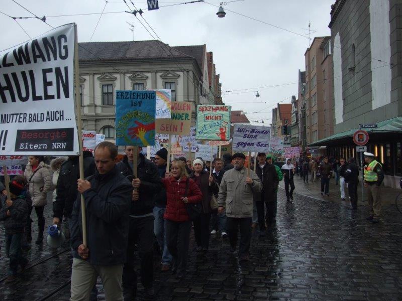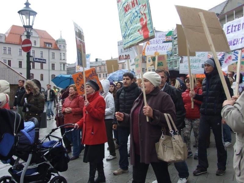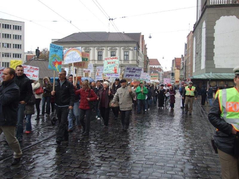 Am 25.10.2014 trotzten hunderte Menschen dem rauen Wetter und demonstrierten in Augsburg gegen die zunehmende Frühsexualisierung der Kinder an Grundschulen.