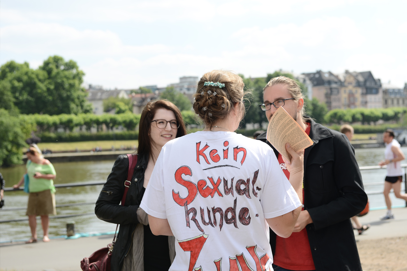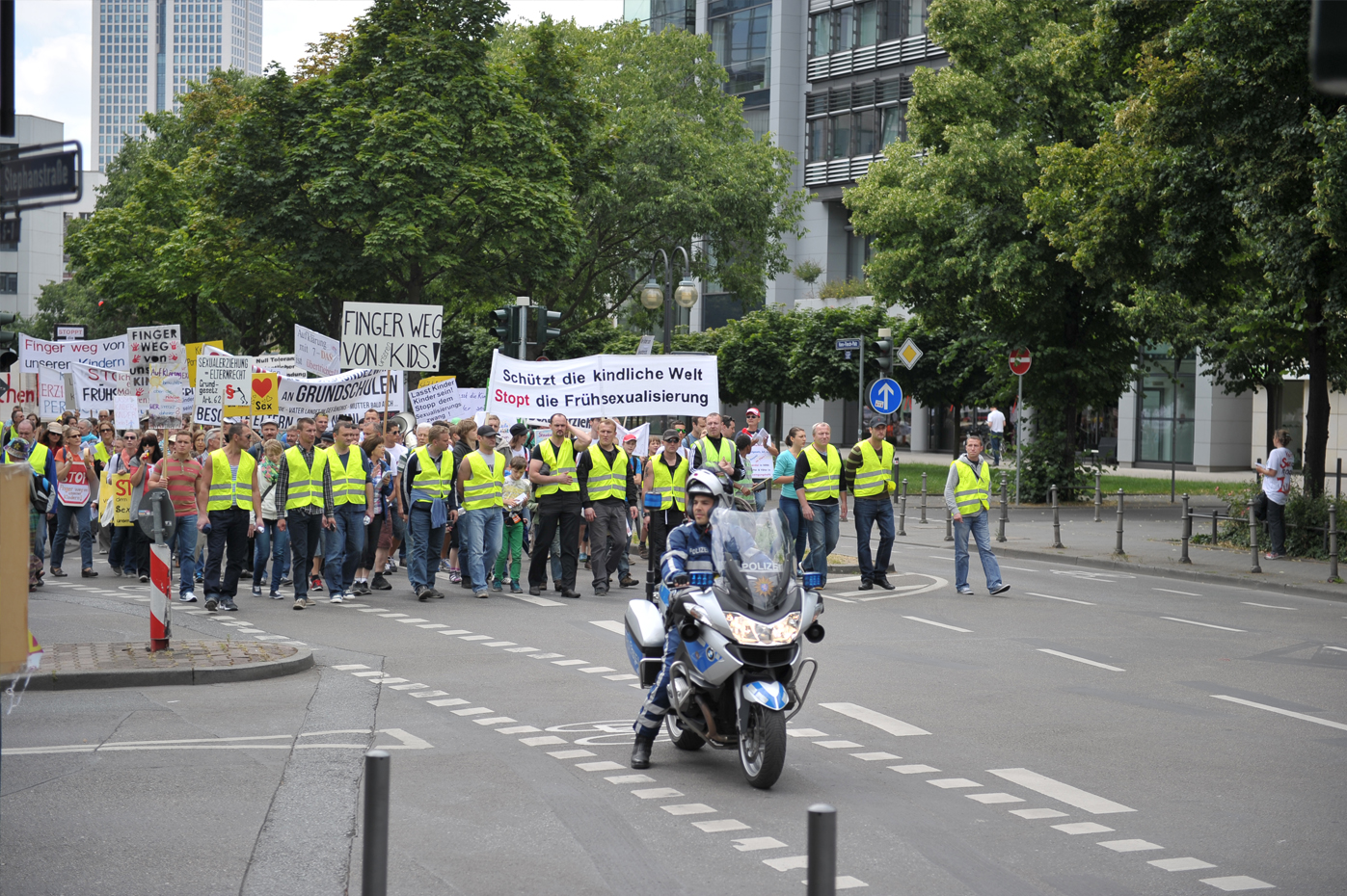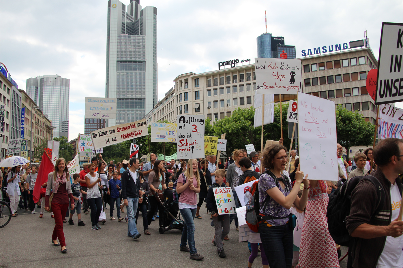 Am 21.06.2014 demonstrierten tausende Menschen auf dem Römerberg in Frankfurt gegen die zunehmende Frühsexualisierung der Kinder. Menschen aus verschiedenen Ländern trafen zusammen, um ein Zeichen gegen diese Entwicklung zu setzen und ihre Stimme zu erheben.